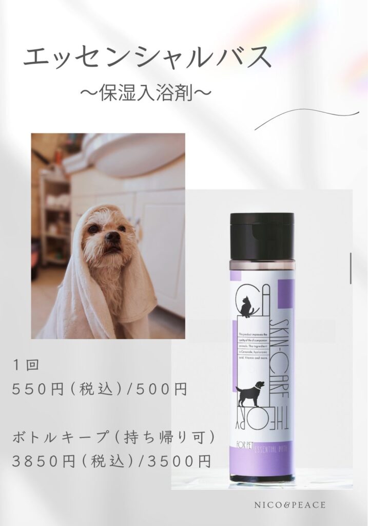 「毛並みがサラサラになった」「かゆみが減ってぐっすり眠れるようになった」など、飼い主さまからも嬉しい声をいただいている保湿バス。
